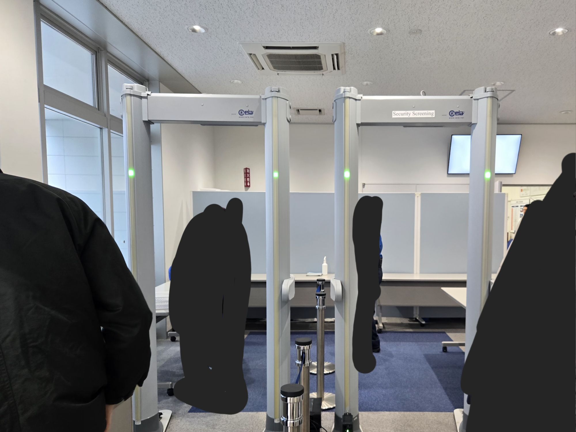 予定時刻となり、集合場所へ向かうと手荷物検査を受ける。